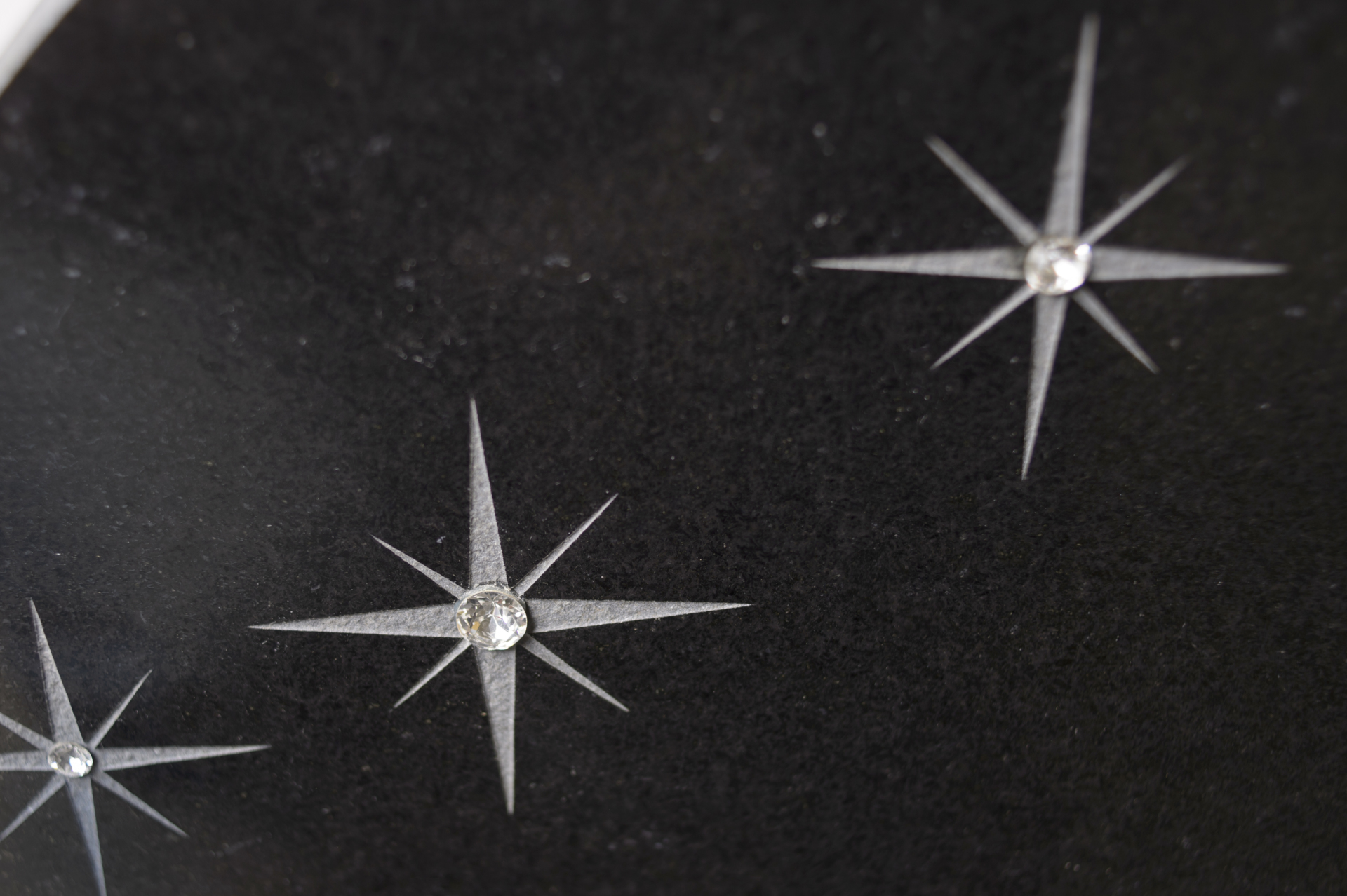 Framsidan polerad, i övrigt blästrad med stjärnblänk av Swarovskikristaller.