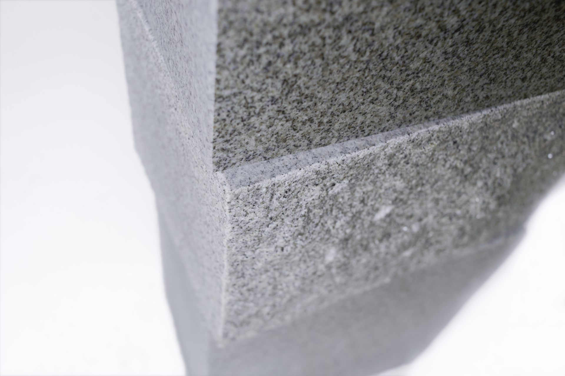 Polerad framsida med finhuggen rand, kanterna blästrade.
