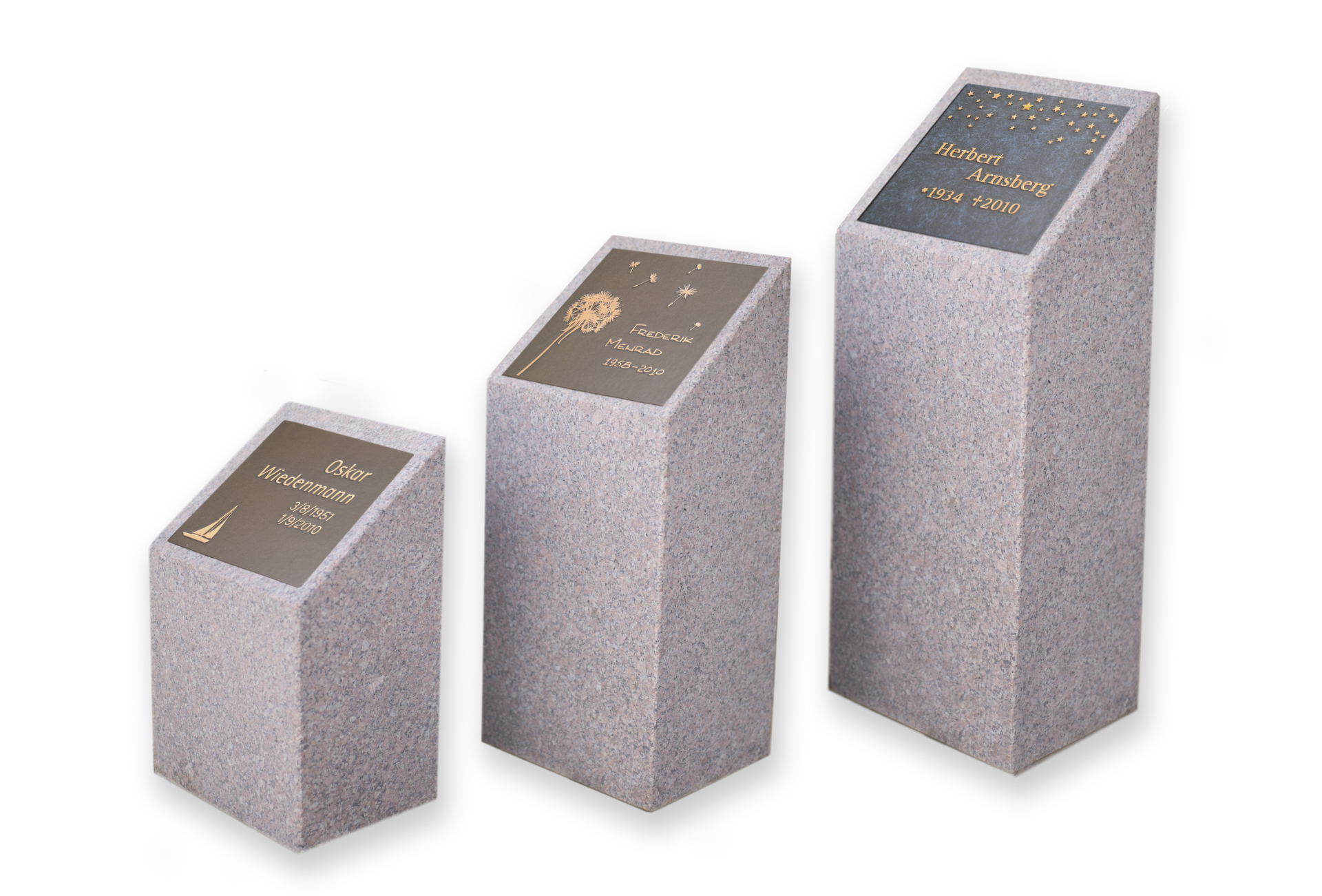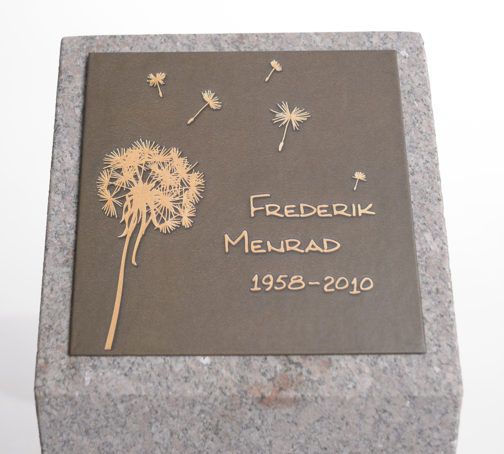 Alla sidor blästrade med en bronsplatta 15*15cm. Finns med olika motiv.