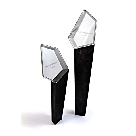 - Texten försänkt och svartmålad i kristallblocket