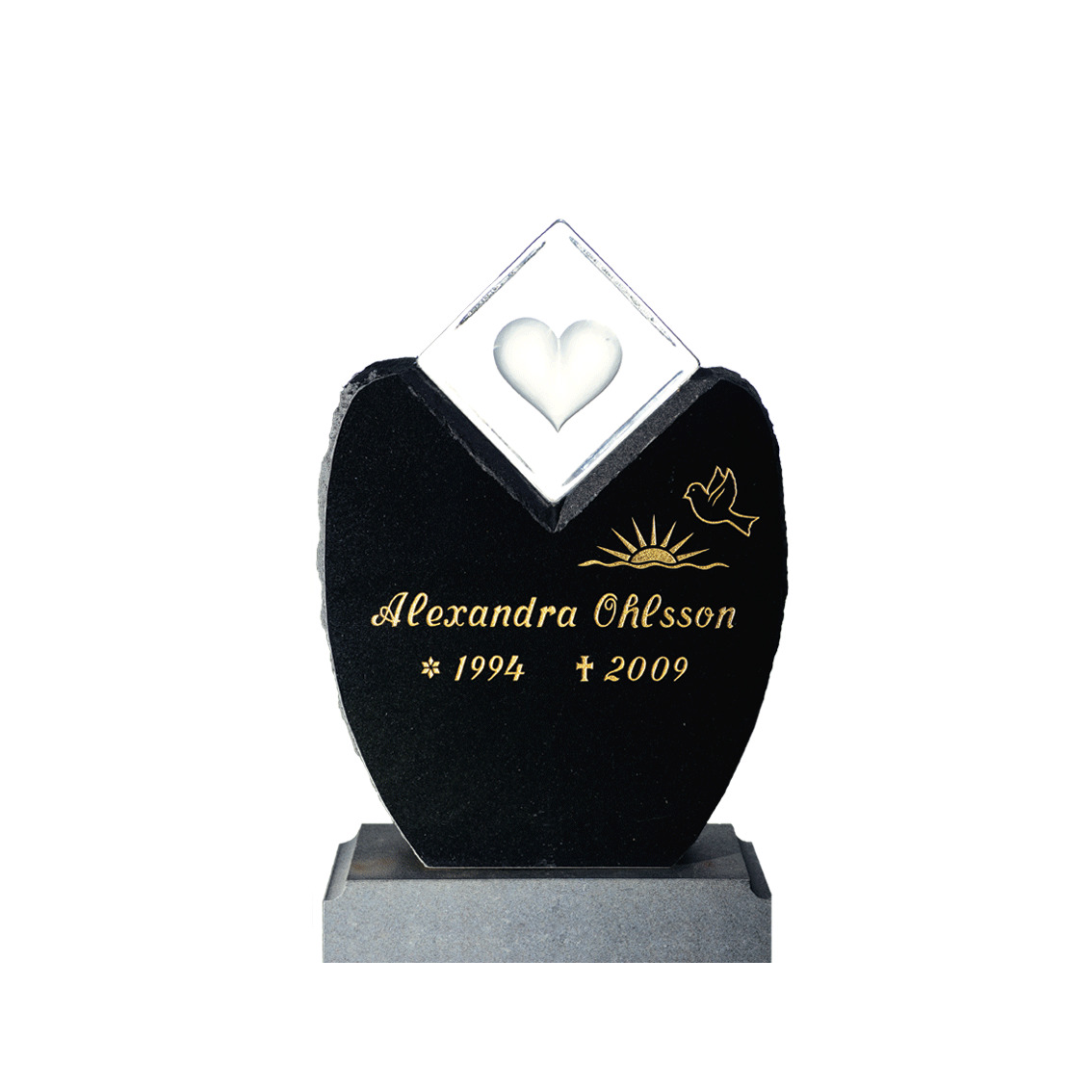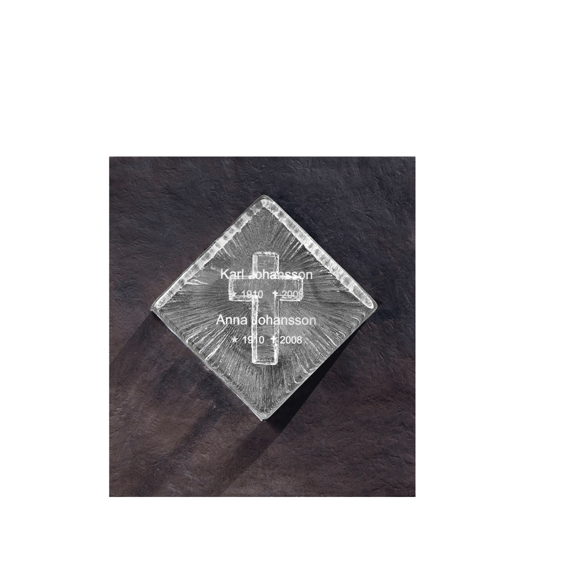 Valfri dekor som finns i vårt graveringsprogram ingår på gravstenen. Önskar ni egen dekor samt text graverat på kristallblocken tillkommer extra kostnad för detta.